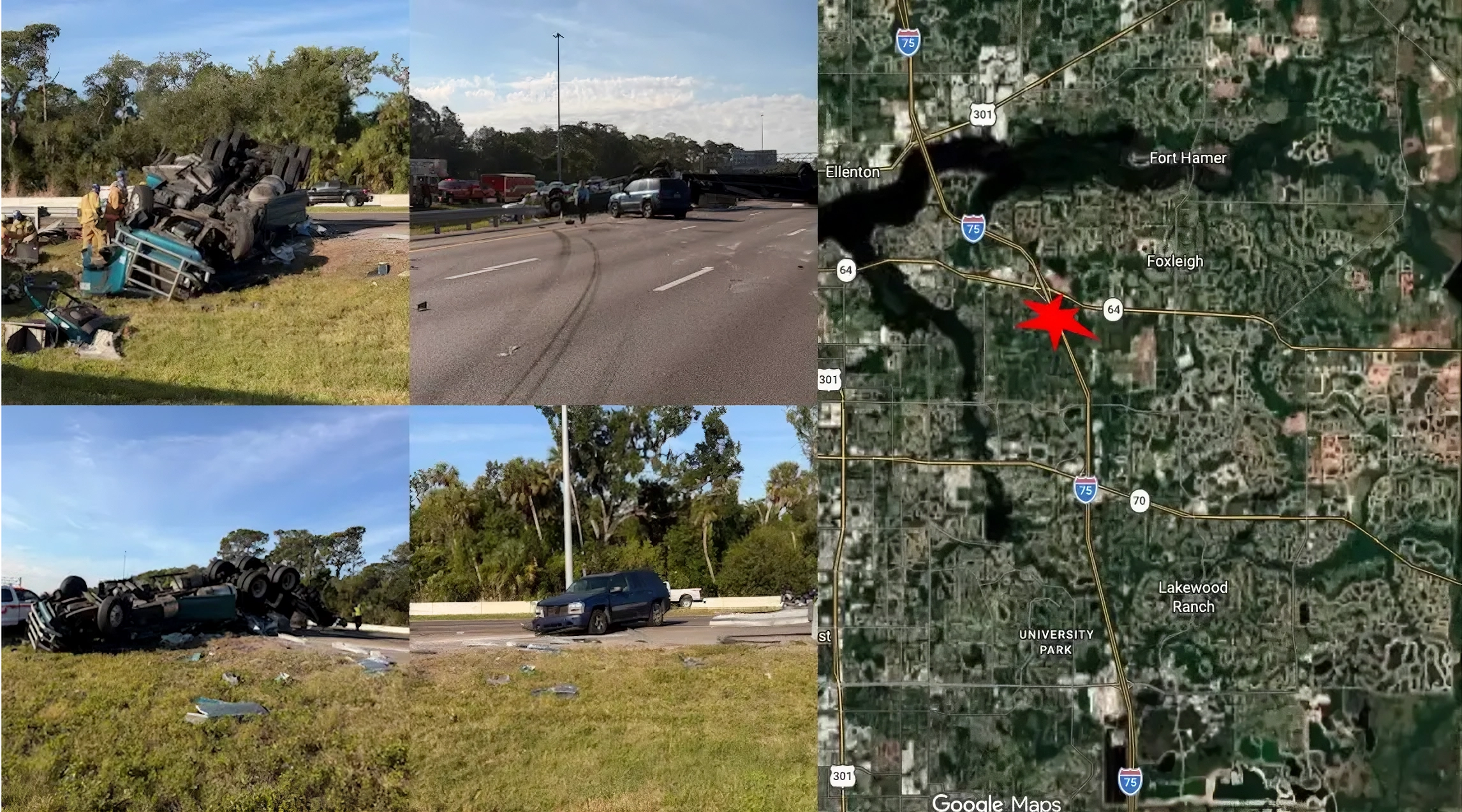 The accident began as a dark-colored Ford Mustang was traveling southbound on I-75 in the left lane. At the same time, a 63-year-old Palmetto man driving a Chevy Trailblazer was traveling southbound in the center lane, while a 34-year-old man from New Smyrna Beach was driving a semi tractor trailer southbound in the same center lane behind the SUV.